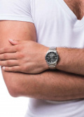 • Круглый стальной корпус с секундной шкалой на безеле.