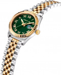 Окошко даты с увеличительным стеклом находится в положении 3 часа. Рифленая заводная головка. Надежный стальной браслет с матовой и полированной отделкой. Раскладывающаяся застежка.