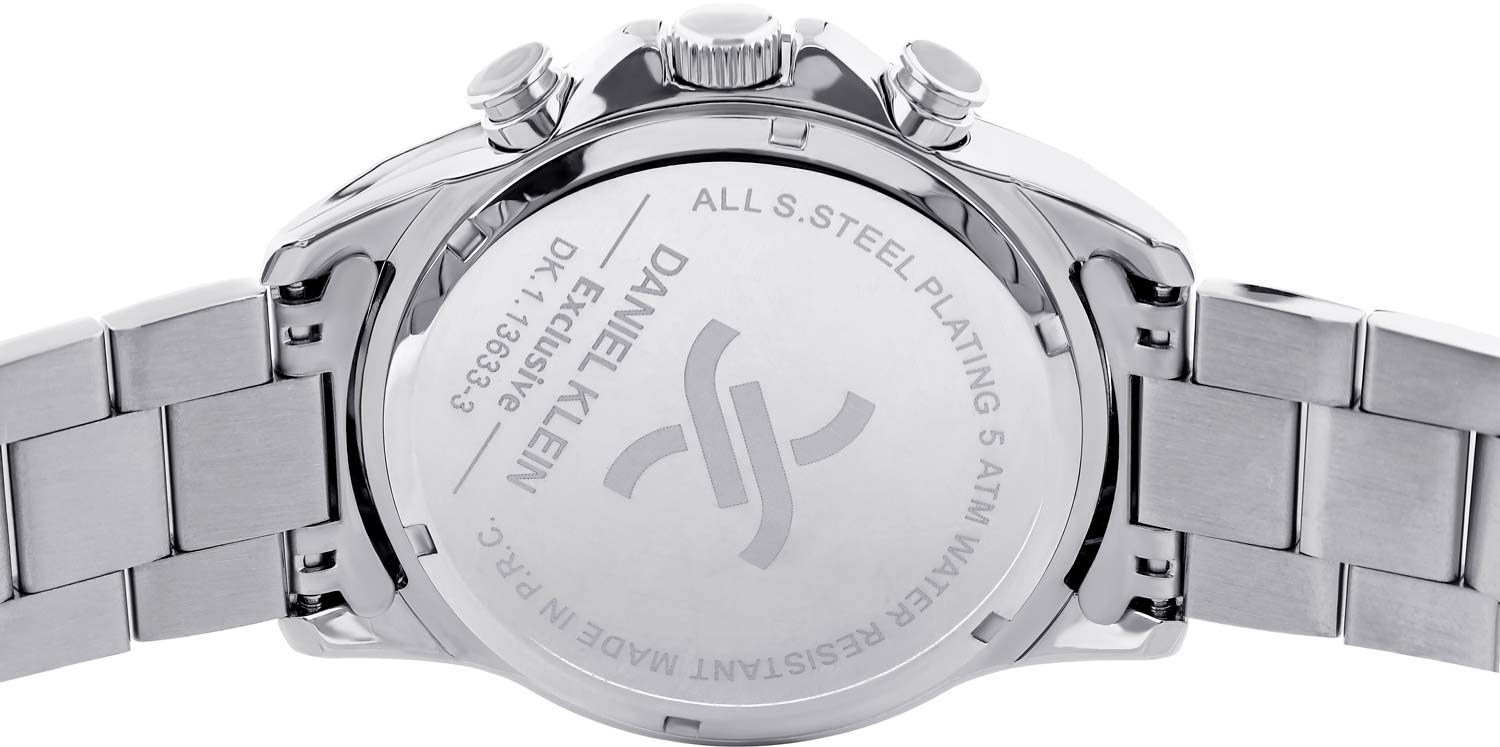 покрытием. Циферблат выполнен по технологии Sunray (солнечные лучи), украшен фирменным логотипом Daniel Klein в положении 3 часа и защищен минеральным