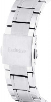 Рифленая заводная головка с защитой. Частично полированный и сатинированный стальной браслет с раскладывающейся застежкой.