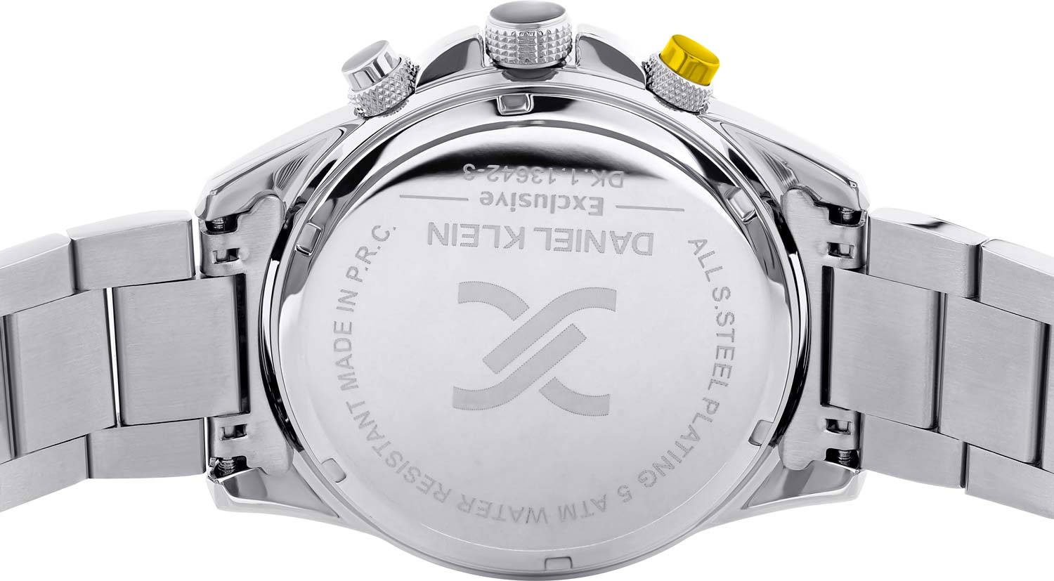 покрытием. Алюминиевый безель. Циферблат украшен фирменным логотипом Daniel Klein в положении 3 часа и защищен минеральным