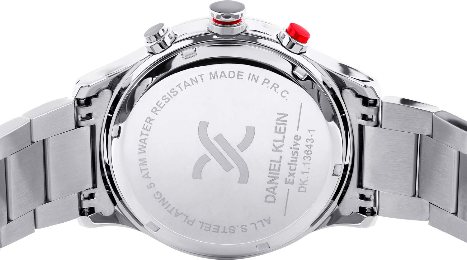 покрытием. Циферблат с метками в виде штрихов украшен фирменным логотипом Daniel Klein в положении 12 часов и защищен минеральным