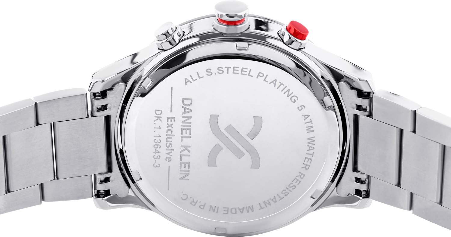покрытием. Циферблат с метками в виде штрихов украшен фирменным логотипом Daniel Klein в положении 12 часов и защищен минеральным