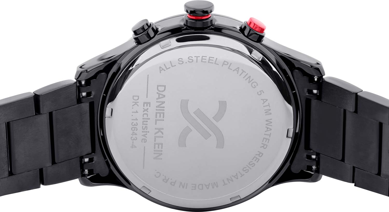 покрытием. Циферблат с метками в виде штрихов украшен фирменным логотипом Daniel Klein в положении 12 часов и защищен минеральным