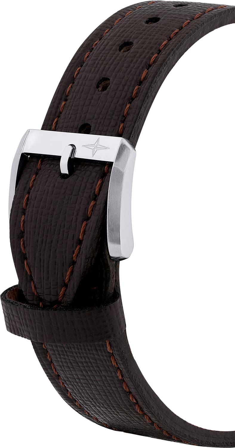 Стрелки и точки на циферблате с люминесцентным покрытием SuperLumiNova BGW9, которое эффектно светится в темноте. Окошко даты находится в положении 3 часа. Функция остановки секундной стрелки. Рифленая заводная головка. Завинчивающаяся задняя крышка с прозрачным окошком. Кожаный ремешок с классической застежкой.