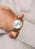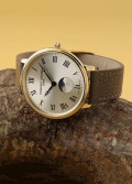 Рифленая заводная головка. Завинчивающаяся задняя крышка. Ремешок из телячьей кожи с классической застежкой.