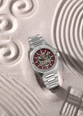 Стрелки и метки с люминесцентным покрытием, которое светится в темноте после непродолжительной зарядки на свету. Заводная головка в форме болта с защитой. Стальной браслет с раскладывающейся застежкой.