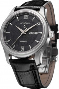 Внешнее кольцо циферблата выполнено по технологии Sunray (солнечные лучи). Накладные метки в виде штрихов и двух римских цифр. Клиновидные стрелки в стиле Dauphine. Сдвоенное окошко даты и дня недели находится в положении 3 часа. Сапфировое стекло, прозрачное и стойкое к появлению микроцарапин.