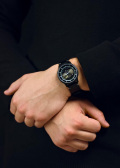 Эффектные механические часы не оставят равнодушным ни одного поклонника уникальных аксессуаров. Спутник. Модель вдохновлена природным явлением «Голубая Луна» - явление, когда происходят два полнолуния в течении одного месяца, происходит примерно один раз в 2-3 года. В механизме 24 камня, частота 28800 полуколебаний в час. Запас хода 40 часов. Ротор украшен выгравированным изображением карты неба. На календарном диске расположены 2 3D-Луны, которые покрыты люминесцентным покрытием Superluminova и делающие шаг на одно деление каждые 24 часа. Циферблат с метками в виде штрихов украшен вставкой в виде облака, на которой изображена карта звездного неба. Защищает циферблат выпуклое сапфировое стекло толщиной 2,4мм. Заводная головка находится в положении 4 часа. Прозрачная задняя крышка с сапфировым стеклом. Ремешок с классической застежкой и системой быстрой замены.