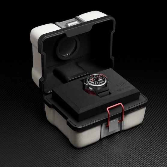 Система реверса позволяет полностью перевернуть корпус в обоих направлениях. Быстроразъемная защелка освобождает заводную головку от ее защиты, вращая протектор заводной головки. Два специальных рычага позволяют корпусу свободно вращаться, а отчетливый щелчок сообщает вам, когда корпус находится в правильном положении, чтобы его можно было зафиксировать на месте. Один простой маневр превращает RIM Sport в элегантные и спортивные часы с хронографом.