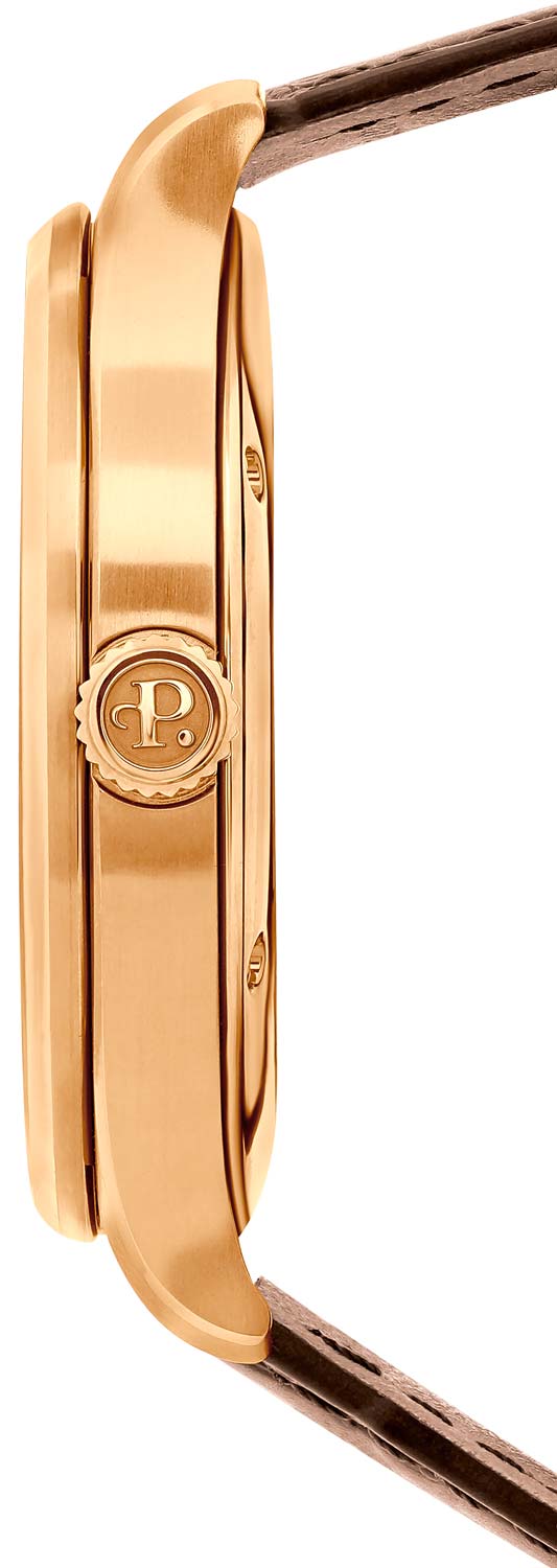 украшен логотипом Perrelet. Лакированный циферблат выполнен по технологии Sunray (солнечные лучи) и защищен сапфировым стеклом, которое обладает высокой устойчивостью к появлению царапин. Окошко даты. Прозрачная задняя крышка. Ремешок с классической застежкой.