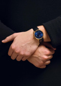 Запас хода 42 часа. Механизм часов с родиевым покрытием декорирован узором «Cotes de Geneve», а ротор