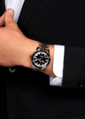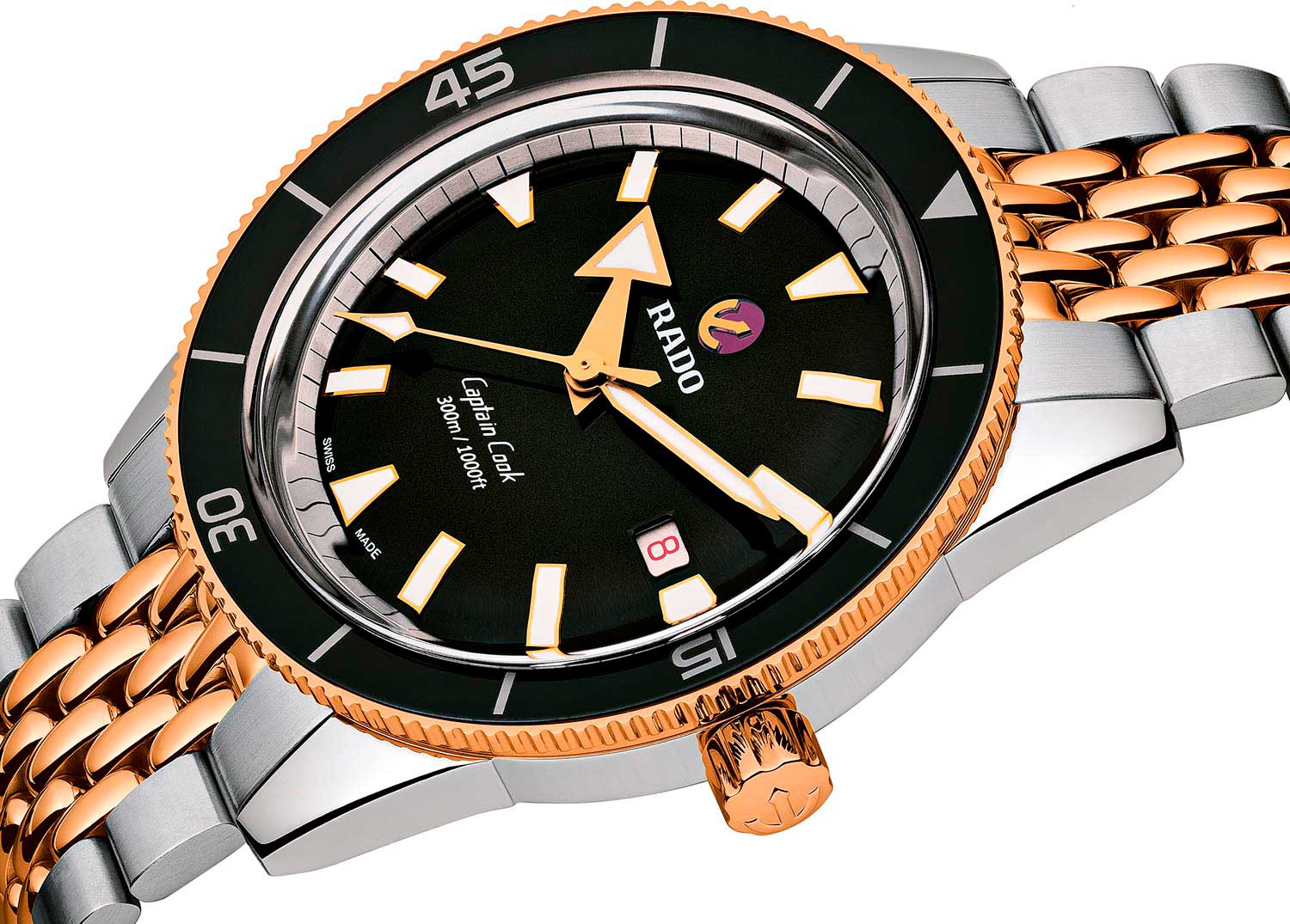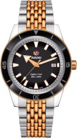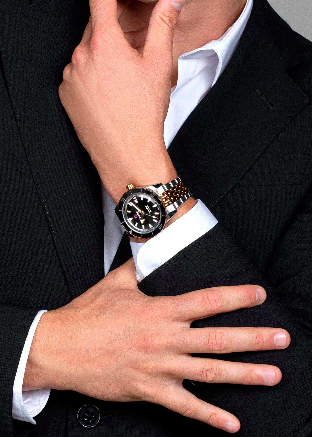 Метки в виде штрихов. Метки и стрелки с люминесцентным покрытием, которое светится в темноте после непродолжительной зарядки на свету. Окошко даты находится в положении 3 часа. Рифленая заводная головка. Завинчивающаяся задняя крышка с гравировкой. Надежный стальной браслет с раскладывающейся застежкой. Система быстрой замены браслета.