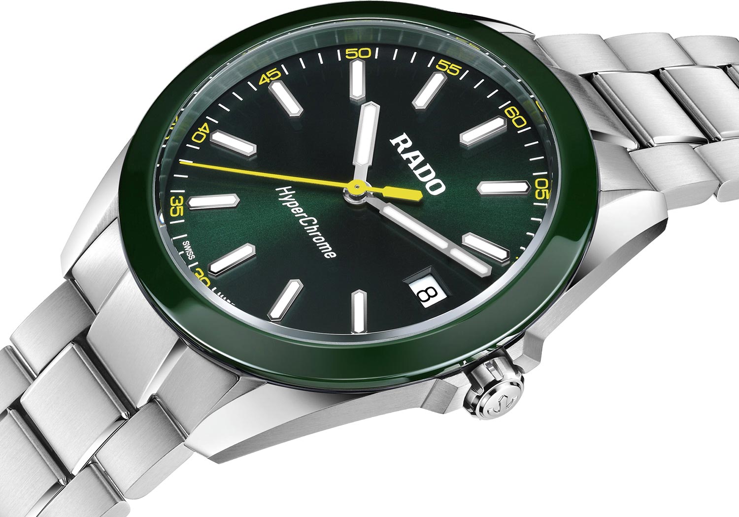 Накладные метки в виде штрихов. Заостренные прямоугольные стрелки в стиле Baton. Метки и стрелки с люминесцентным покрытием, которое светится в темноте после непродолжительной зарядки на свету. Ночью индекс двенадцати часов и минутная стрелка светятся зеленым, а остальные индексы и часовая стрелка – синим, обеспечивая быстрое и интуитивное считывание времени при любом освещении.
