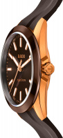 Окошко даты находится в положении 3 часа. Изогнутое сапфировое стекло с двусторонним антибликовым покрытием. Рифленая заводная головка с защитой. Задняя крышка украшена гравировкой. Каучуковый ремешок фиксируется классической стальной застежкой с полированной и сатинированной отделкой.