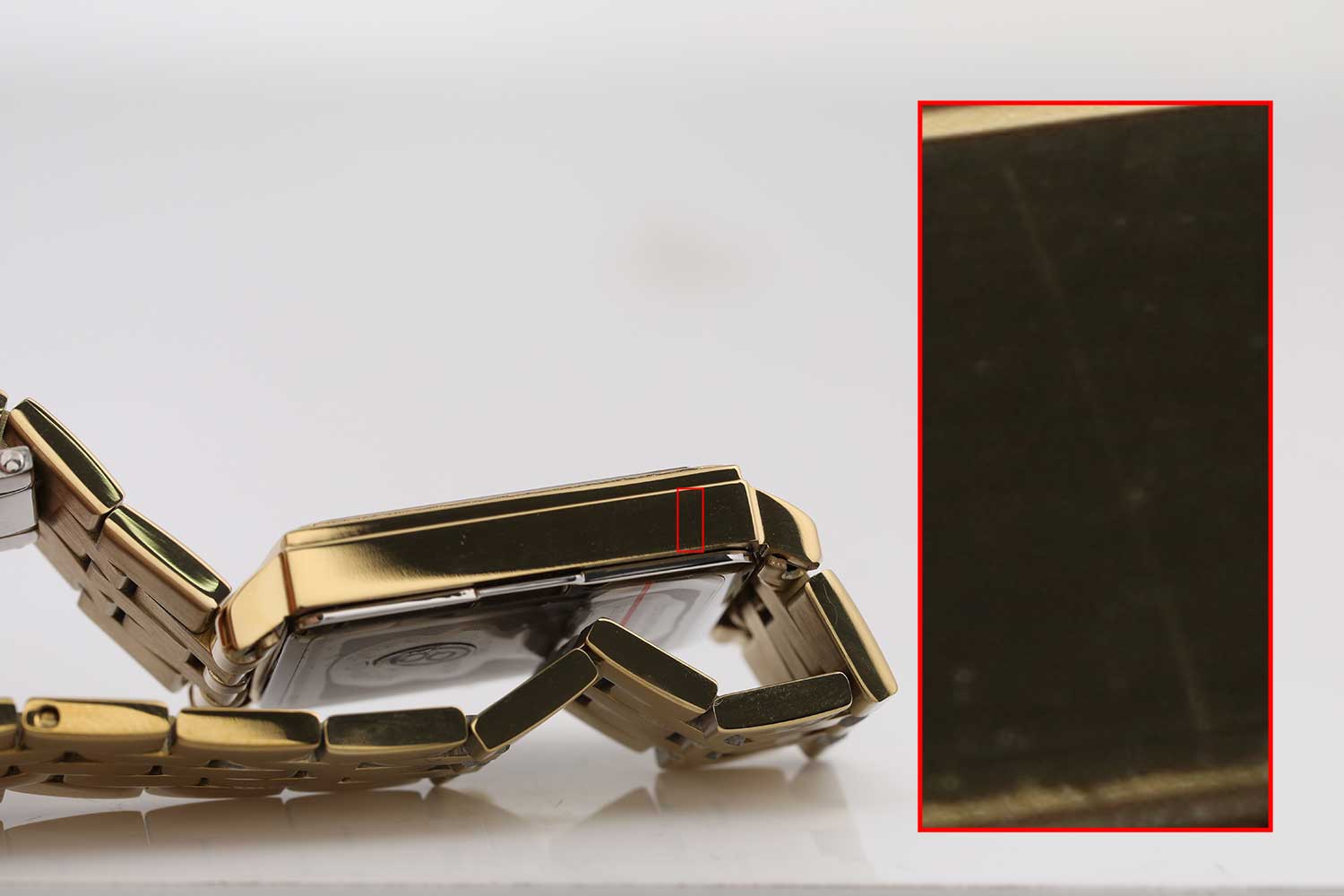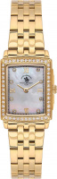 Кварцевые наручные женские часы. Прямоугольный стальной корпус с полированной отделкой украшен кристаллами. Перламутровый циферблат украшен фирменным логотипом. Накладные метки в виде римских цифр и точек, украшенных кристаллами. Прямоугольные стрелки в стиле Baton. Рифленая заводная головка с защитой. Надежный стальной браслет с полированной отделкой. Раскладывающаяся застежка.